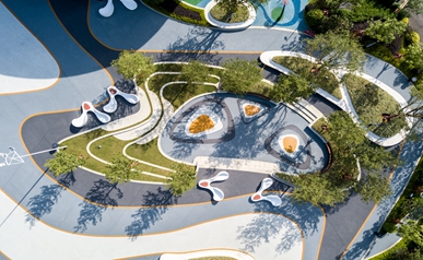 松山湖萬(wàn)象匯延續(xù)城市綠色脈絡(luò),在原有綠地肌理上嵌入便民功能空間,將中軸核心步行街作為景觀重點(diǎn),通過(guò)空間尺度研究,并采用循環(huán)永動(dòng)的“圓”作為空間結(jié)構(gòu)構(gòu)建起一系列場(chǎng)景,將“圓”融入鋪裝和景觀元件之中,定義...
