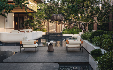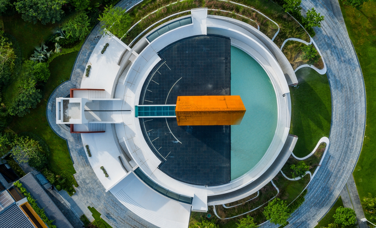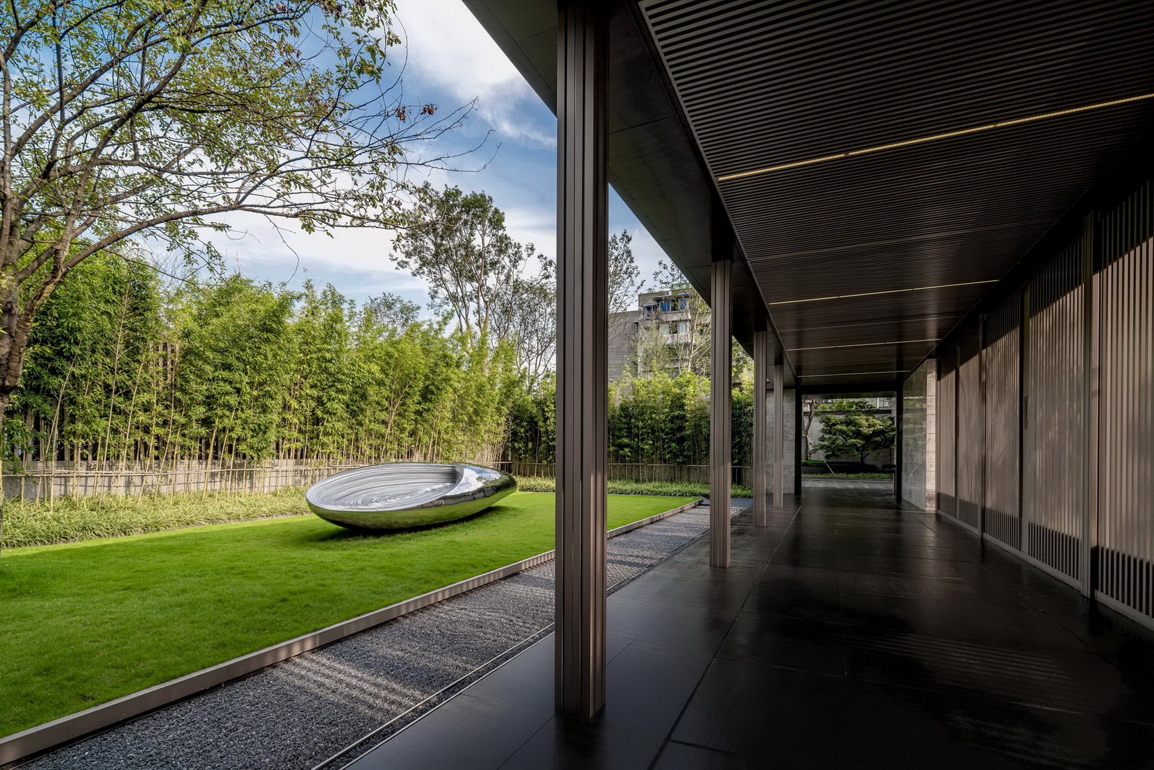 保利玥府位于江門(mén)新會(huì)古井,古井與崖山是著名的崖山海戰(zhàn)發(fā)生地,此戰(zhàn)之后,南宋宣告覆滅,保利玥府設(shè)計(jì)選擇讓景觀“消隱”,以極簡(jiǎn)的手法來(lái)烘托建筑讓建筑與景完美交融。