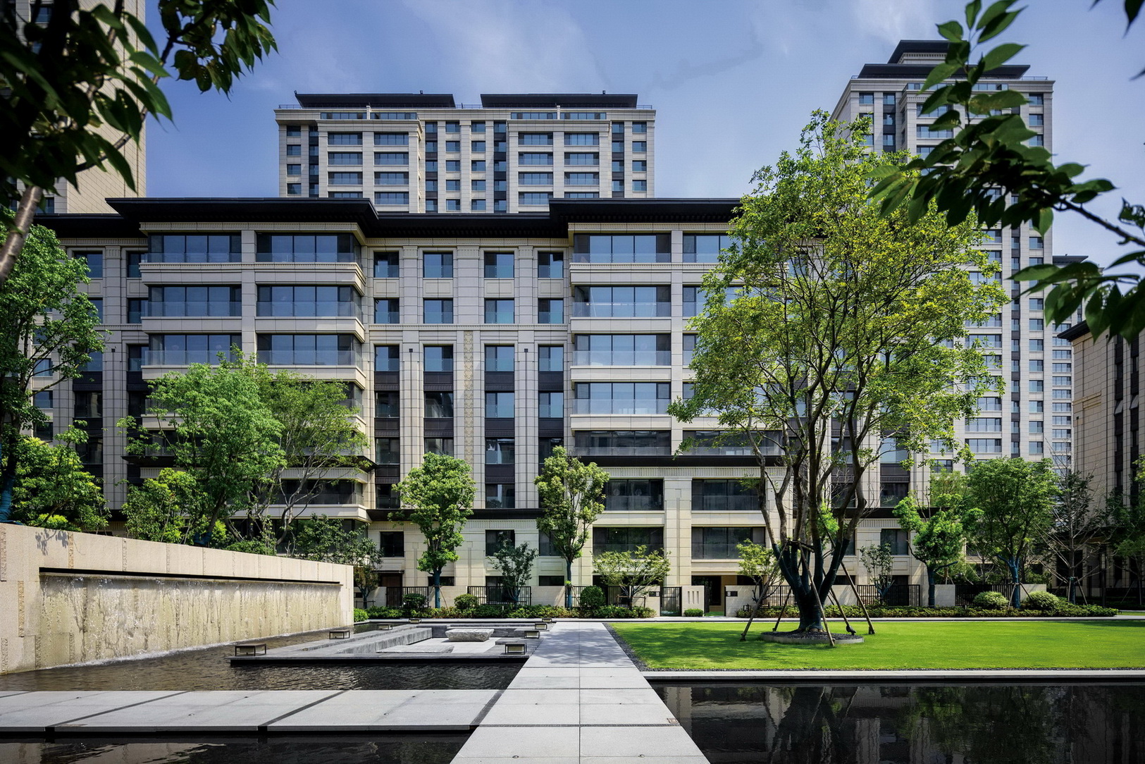師法自然,致敬土地,從水鄉(xiāng)城中擷取山影、水境、樹(shù)聲為景觀靈感, 以“折疊花園”演繹當(dāng)代城中山水自然庭園,以簡(jiǎn)約的造景手法續(xù)寫(xiě)城市自然景觀形態(tài)。