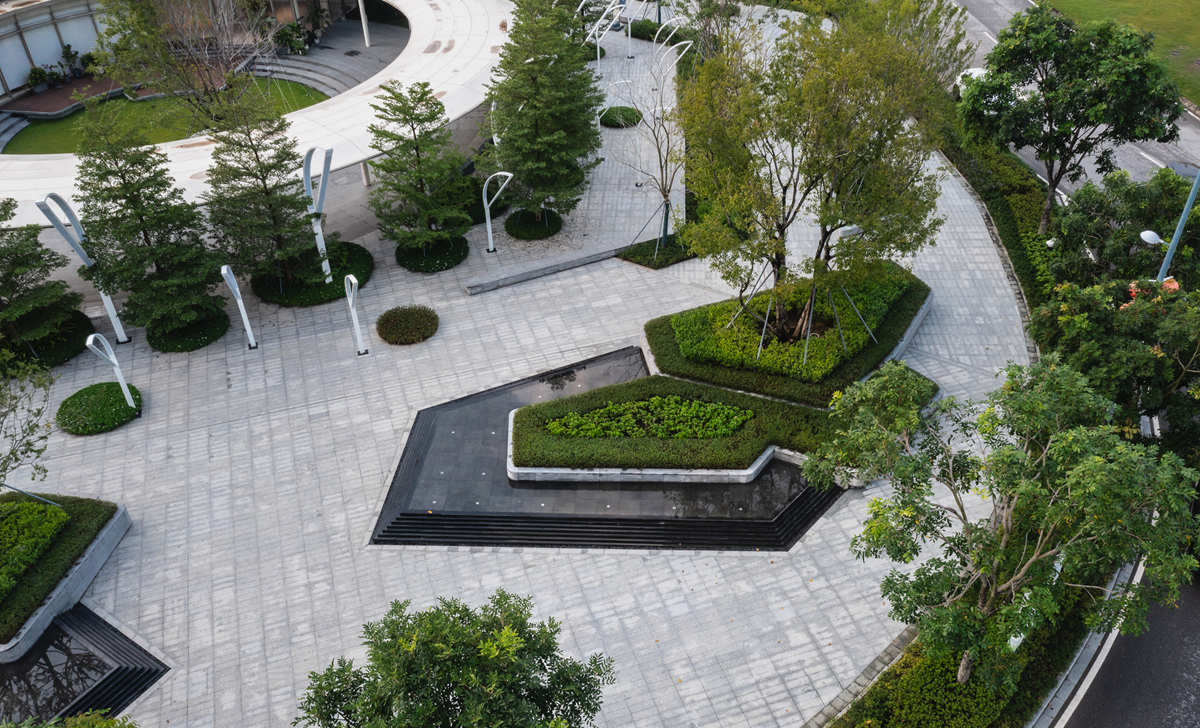 作為佛山首個(gè)「序」系超新規(guī)濱水展示區(qū),項(xiàng)目以“現(xiàn)代美學(xué)+生態(tài)宜居” 為理念,將高奢酒店的營(yíng)造邏輯融入社區(qū)景觀,引東平河活水入園,納天光云影入室,打造沉浸式歸家動(dòng)線與多層次景觀空間,構(gòu)筑一處自然、建筑與生活共鳴的藝術(shù)場(chǎng)域。普邦股份克服場(chǎng)地復(fù)雜、雨季施工、眾多水景結(jié)構(gòu)、異形結(jié)構(gòu)、弧形景墻等諸多難題,在前期規(guī)劃、方案落地,實(shí)施過(guò)程中整體籌劃,通過(guò)精細(xì)化鋪裝拼接、藝術(shù)景墻與鏡面水景的組合營(yíng)造高端質(zhì)感,結(jié)合組團(tuán)綠化及濱水植物帶,呈現(xiàn)出兼具高端質(zhì)感與自然活力的展示區(qū)景觀,樹(shù)立濱水人居營(yíng)造新標(biāo)桿。