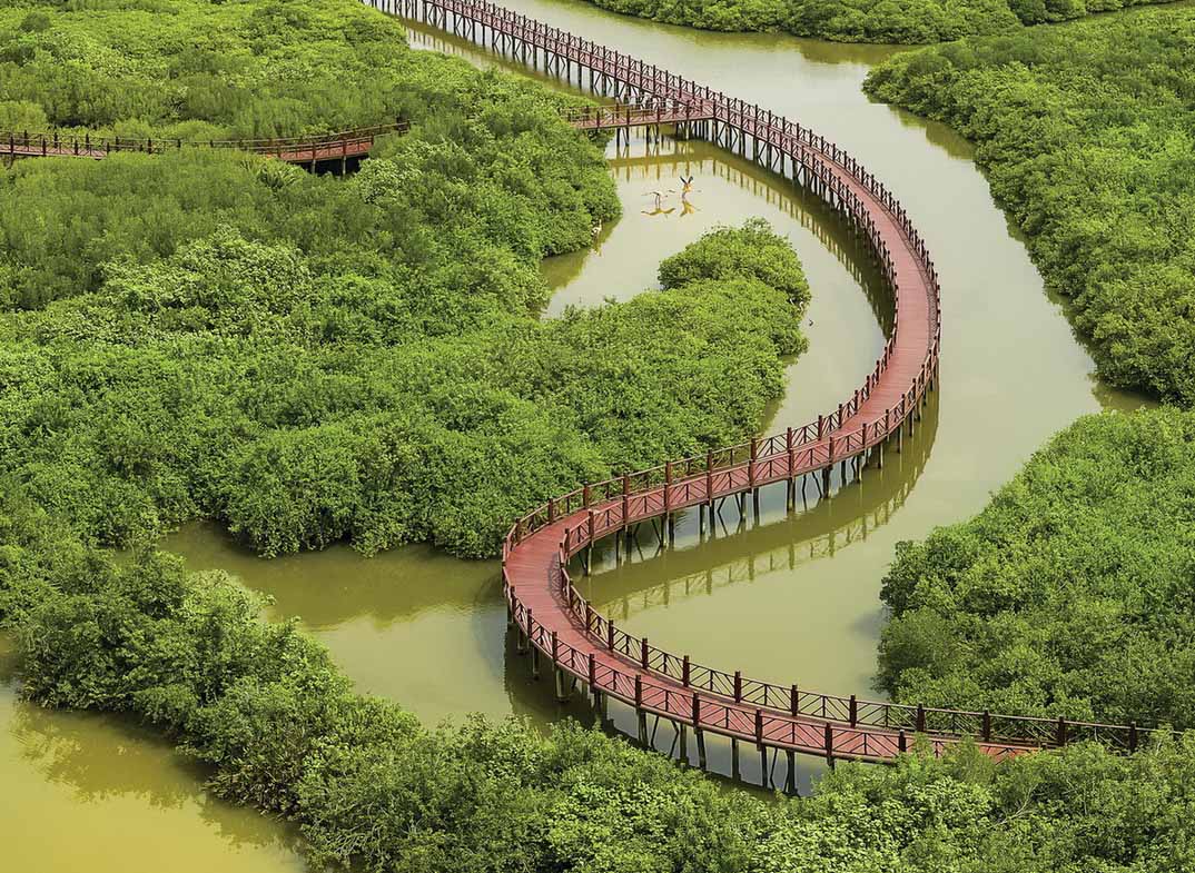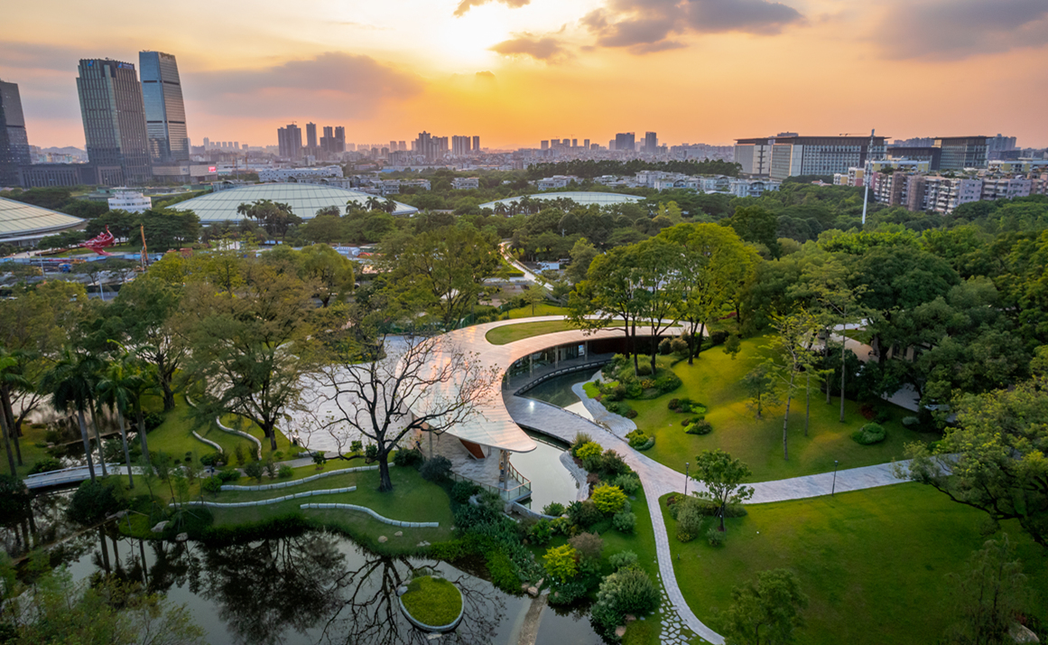 被譽(yù)為前?!熬G芯”的桂灣公園,是前海第一個(gè)永久性、水廊道公園。項(xiàng)目共擁有100 多種、6000 多棵喬木,綠地率72% 以上?;谏鷳B(tài)優(yōu)先原則,項(xiàng)目布局紅樹(shù)林海水濕地約6 萬(wàn)平方米,淡水濕地約2 萬(wàn)平方米,打造“會(huì)呼吸...