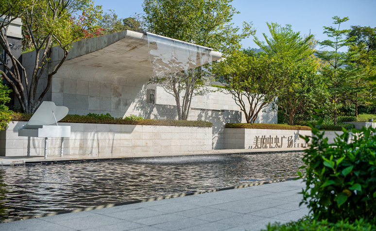 保利玥府位于江門(mén)新會(huì)古井,古井與崖山是著名的崖山海戰(zhàn)發(fā)生地,此戰(zhàn)之后,南宋宣告覆滅,保利玥府設(shè)計(jì)選擇讓景觀“消隱”,以極簡(jiǎn)的手法來(lái)烘托建筑讓建筑與景完美交融。