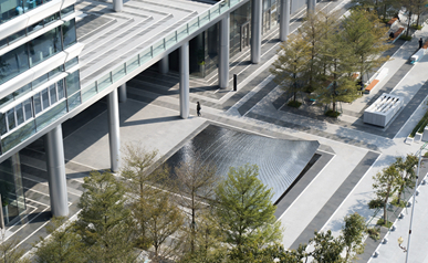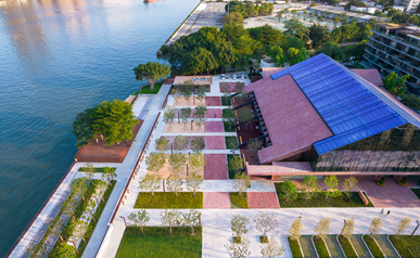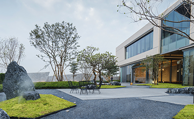 師法自然,致敬土地,從水鄉(xiāng)城中擷取山影、水境、樹(shù)聲為景觀靈感, 以“折疊花園”演繹當(dāng)代城中山水自然庭園,以簡(jiǎn)約的造景手法續(xù)寫(xiě)城市自然景觀形態(tài)。