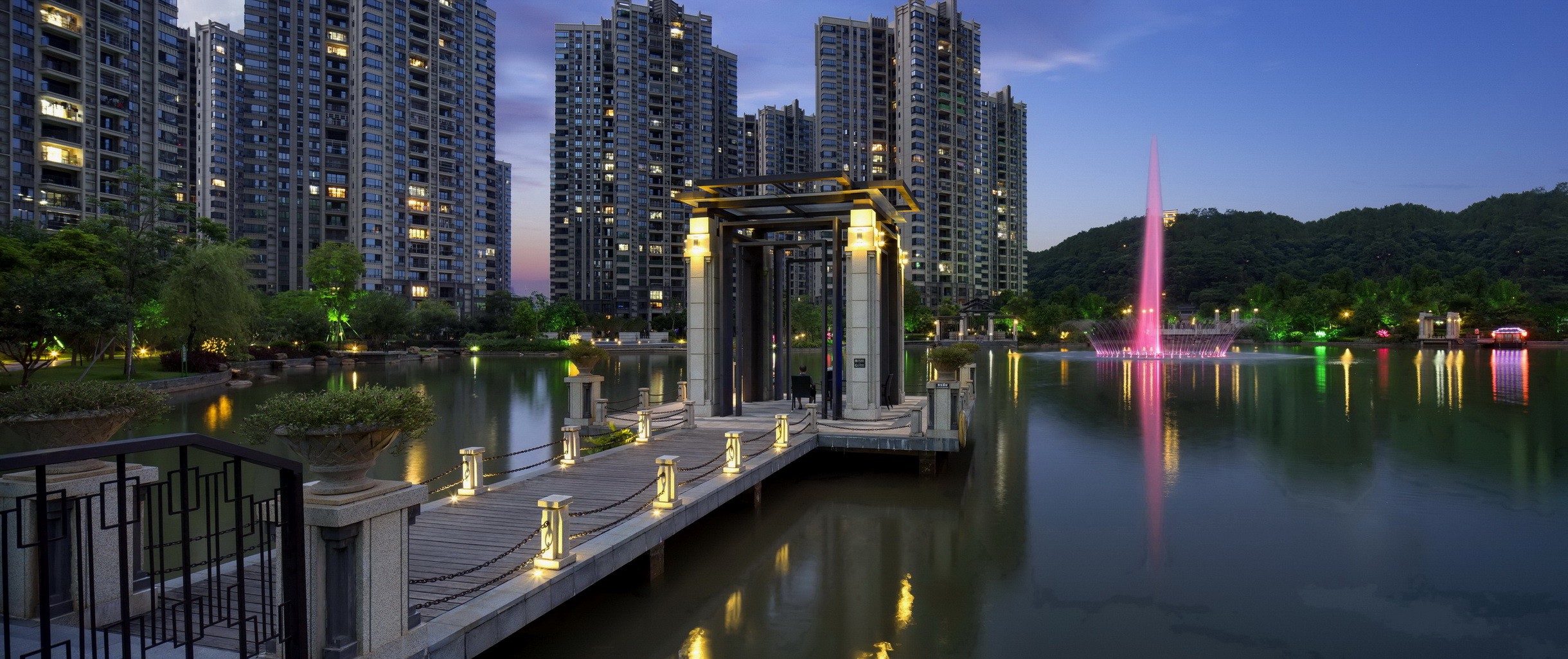 梅州富力城依山傍水,在中央形成生態(tài)湖,建筑依湖而建,擁有當(dāng)?shù)靥厣匀毁Y源。樹、河流、山田、泥土作為大自然的重要組成部分,是生命力的代表,城市中的人們生活在冰冷的水泥森林里,總會向往著綠色活力的度假居所,抽取大自然里的肌為這一切作基礎(chǔ)。樹林已經(jīng)是城市的稀缺資源,而本項目希望最大限度的利用土地資源,營造出大片綠地河流的景觀效果,同時為了迎合當(dāng)代社會精英所追求的健康、環(huán)保、可持續(xù)等生活理念,為其提供尋找自然的居所。