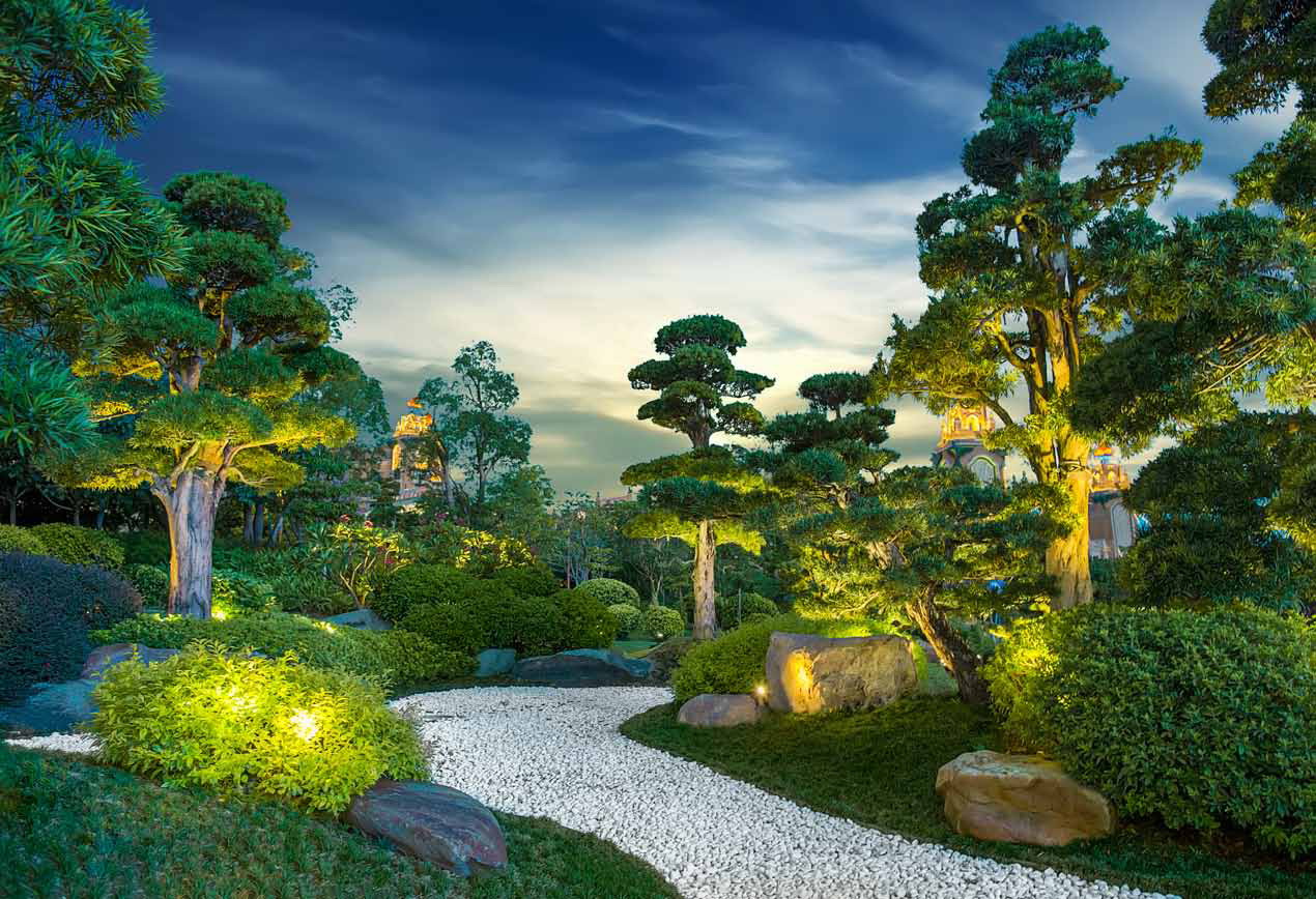 項(xiàng)目位于珠海長(zhǎng)隆國(guó)際海洋度假區(qū)的中心位置,這一座擁有1888間豪華客套房海洋主題酒店由頂尖的建筑設(shè)計(jì)師、室內(nèi)設(shè)計(jì)師和園林景觀設(shè)計(jì)師傾力打造。橫琴灣五星級(jí)酒店是中國(guó)最大的海洋生態(tài)主題酒店,緊鄰橫琴灣,地理位置優(yōu)越,酒店室外園林景觀豐富多變,有用各種名貴樹(shù)種打造的植物景觀,有與海豚池毗鄰的室外泳池、人造沙灘、水上樂(lè)園,及海洋主題雕塑等景觀,夜晚燈光璀璨,是一處景色美輪美奐的休閑度假酒店。橫琴灣酒店室外以多種名貴樹(shù)種作為植物景觀骨架,室外泳池與海豚池相鄰,通過(guò)人造沙灘和水上樂(lè)園的建設(shè),以及海洋主題雕塑的應(yīng)用,打造出奢華高貴、豐富多變的園林景觀。硬質(zhì)景觀的材料、樣式、色彩以及苗木品種的選定與主題高度吻合,給人以無(wú)限的遐想。景觀和是一條連接酒店和海洋王國(guó)的水陸兩用交通紐帶,植物景觀特點(diǎn)與橫琴灣酒店一致,假山漂流河道特有的主題元素運(yùn)用,使得整個(gè)景觀既保持了獨(dú)立個(gè)性,又顯得協(xié)調(diào)統(tǒng)一。