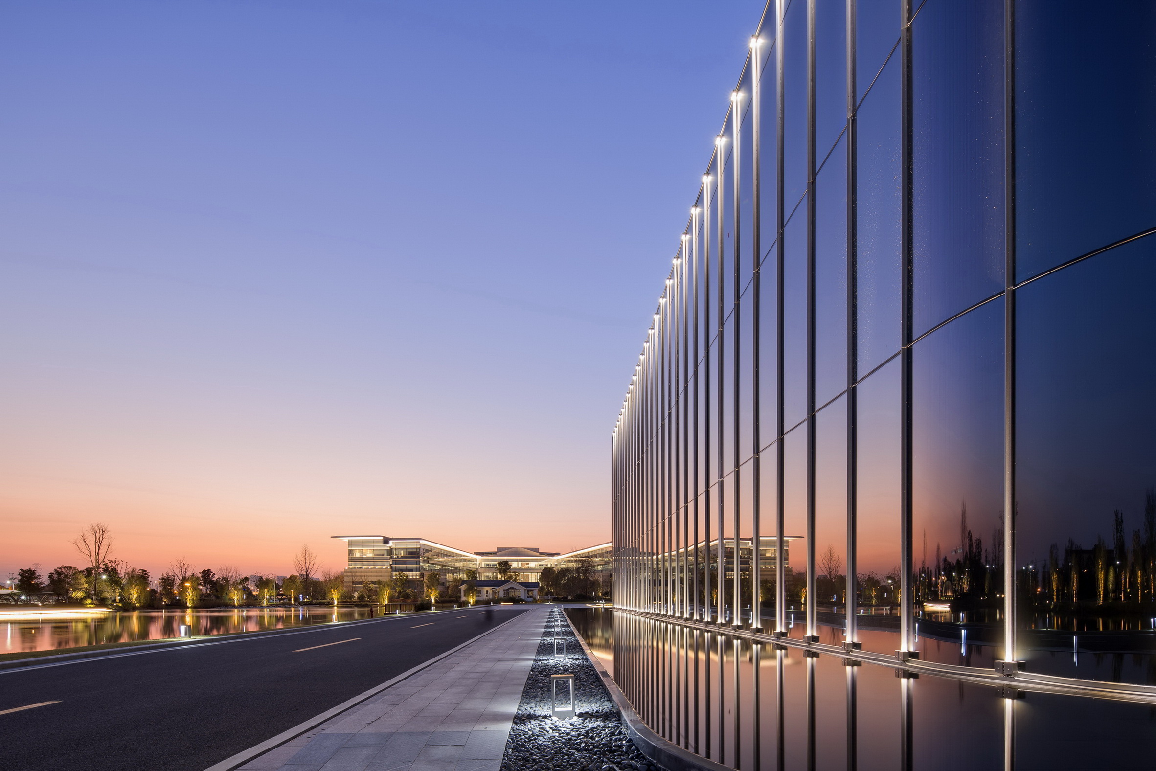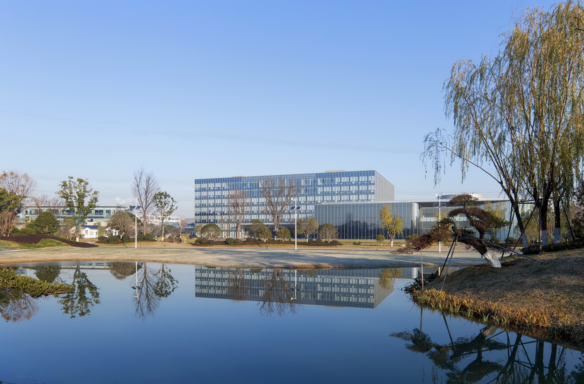 蘇州協(xié)鑫工業(yè)應(yīng)用研究院是協(xié)鑫集團(tuán)總部所在地,其主要滿足協(xié)鑫集團(tuán)及關(guān)聯(lián)企業(yè)在光伏、電力等領(lǐng)域的科研需求。項目采用了自然式園林景觀風(fēng)格,整體大氣簡潔,地形起伏自然,層次分明;庭院結(jié)合自然水系,曲線流暢植物配置因形就勢,疏密有致。此外,由于項目地表水位高,植物生長易積水,普邦股份為此硏發(fā)設(shè)計岀可持續(xù)、美觀、低成本造價的樹木根部低成本自動排水系統(tǒng)構(gòu)造,該項成果也已獲得國家實用新型專利。