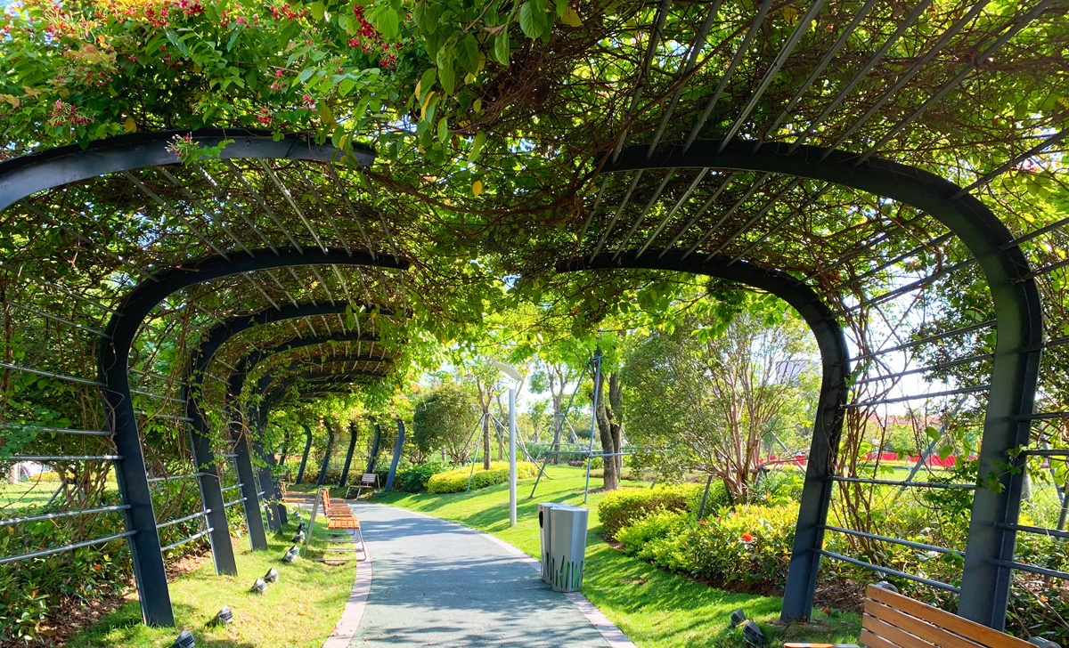 前海紫荊園以紫荊花為主題,整個(gè)園區(qū)占地約2萬5千平方米,共有6個(gè)品種的紫荊,其中“紅花羊蹄甲”、“宮粉紫荊”、“云南羊蹄甲”以及“嘉氏羊蹄甲”展示著不同地域紫荊文化的特色。香港區(qū)花紅花紫荊與素有南國櫻花之稱的宮粉紫荊為紫荊園主打的花,寓意著中國與香港緊密相連。而出生于艱難困苦環(huán)境的云南羊蹄甲則展示了其不畏艱苦,勇于拼搏的高貴品質(zhì),貼切地展示了深圳的城市精神。紫荊花每年有近6個(gè)月的花期,各色紫荊在園中爭相開放,營造出五彩繽紛、紫荊爭艷的效果。紫荊園還擁有2200平方米的花境,不同品種的花組合設(shè)計(jì)在一起,利用色彩、高低、形狀的差異營造出了一個(gè)唯美夢幻的花園意境。