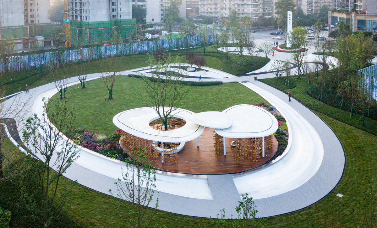 保利時(shí)代首開區(qū)以一顆發(fā)芽的、向上生長(zhǎng)的種子為序幕,演繹富有生命情感的三大空間進(jìn)程,打造出根系廣場(chǎng)、種子客廳以及漂浮水景三大景觀。