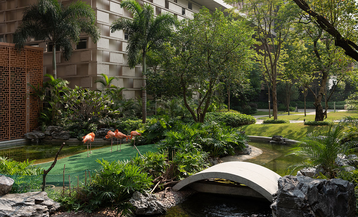 長隆集團總部大樓外部景觀以嶺南園林為原型,嵌入長隆文化元素, 打造具有嶺南特色的現(xiàn)代企業(yè)文化園林景觀體系。景觀設(shè)計著力解決建筑、自然、人以及動物之間的和諧相處。 將“網(wǎng)紅標志景觀”、現(xiàn)代生態(tài)景觀、嶺南精品園、半室內(nèi)山水、動物自然棲息地以及員工休閑地集合與空間之中,打造生態(tài)立體辦公超級綜合體。