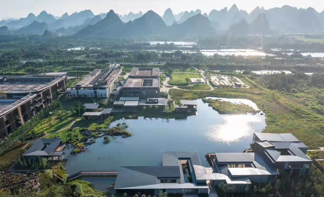 在風光旖旎的山陵之間,十如時尚園與桂林山水碰撞的激情,賦予了可持續(xù)發(fā)展園林出塵與靈動之感。項目堅持可持續(xù)發(fā)展理念,尊重自然,讓十如在田野與疏林之中隱沒,融入自然并成為自然的一部分。當邁入十如的大門,處處彌漫的生態(tài)禪意在心底頓生清明。深聞空氣中田野的芬芳,感受十如與山水的融合,感受十如在山野的生長。