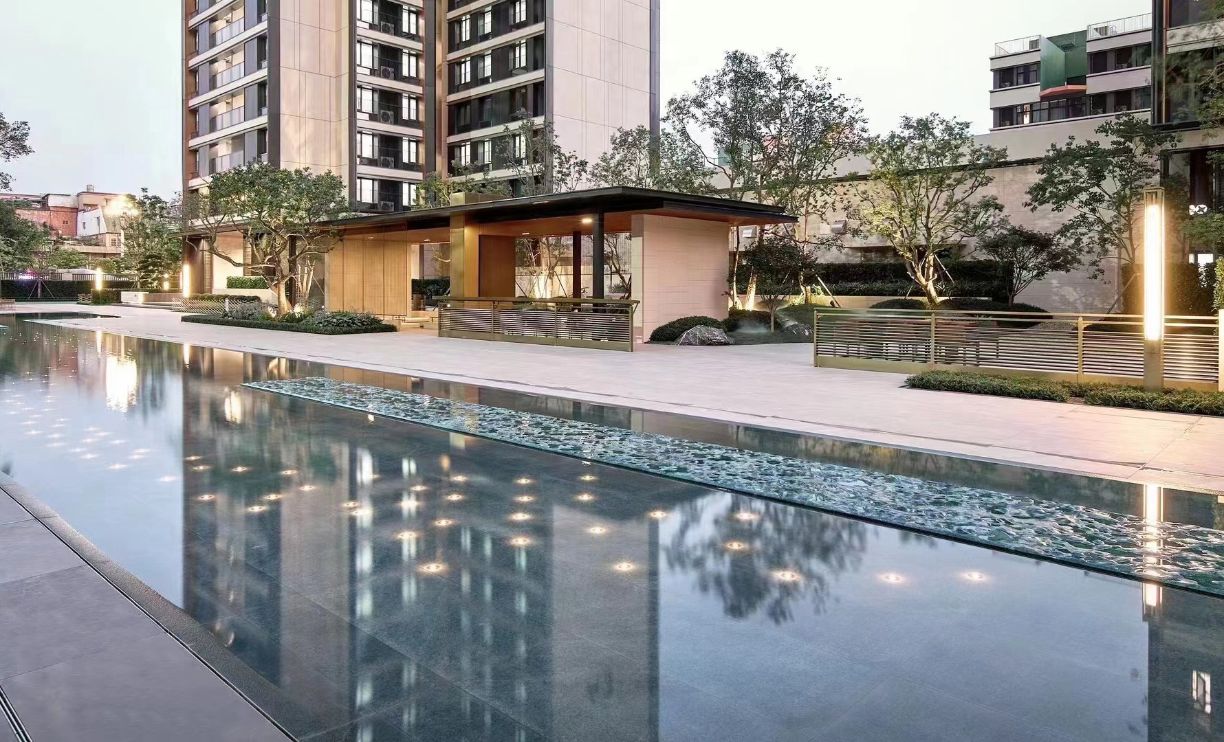 廣州萬科城市之光位于廣州老黃埔核心區(qū),是廣州萬科首個城市更新項目。本項目南A地塊景觀圍繞“居住品質(zhì)感”貫徹了設(shè)計工程的一體化,從設(shè)計、選材、工藝工法全面拉齊。用居住大區(qū)的成本投入,打磨奢享生活的氛圍一體化帶來的前后端對齊與全面交圈,也在突破更高品質(zhì)場景的可能性。