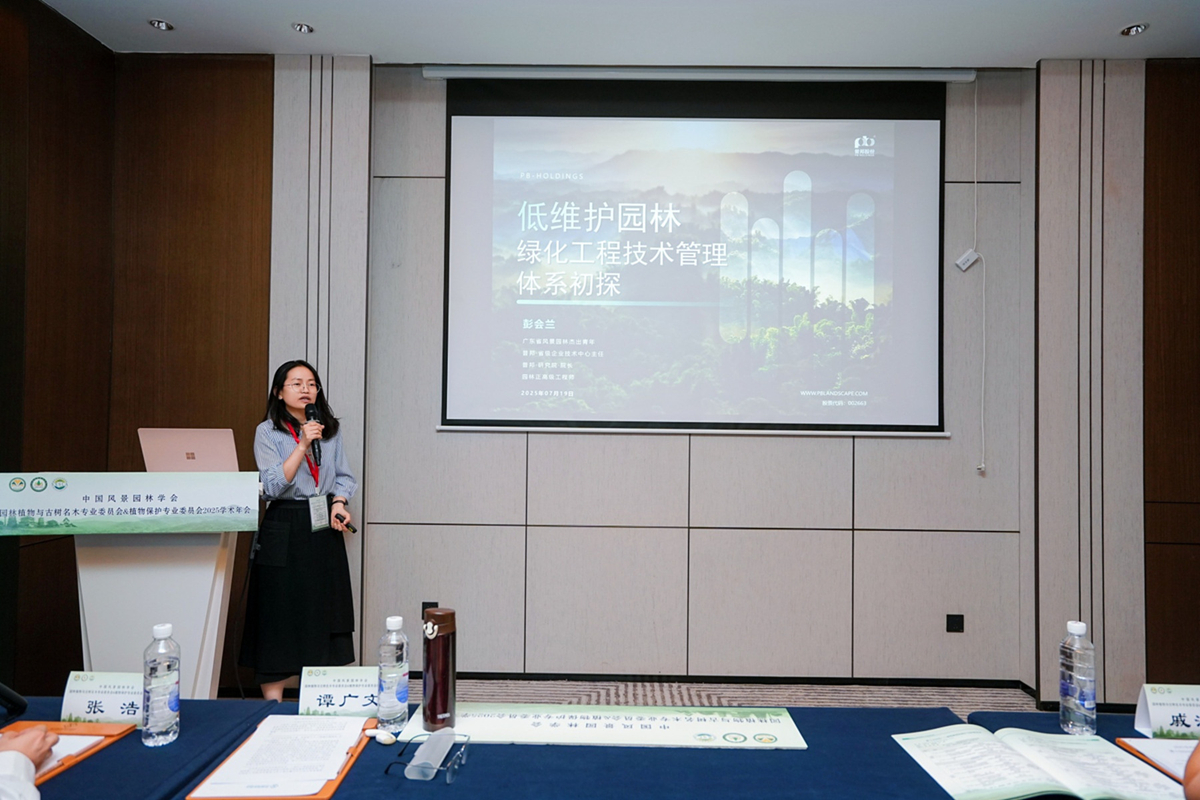 專委會(huì)年會(huì)包含主旨報(bào)告、分論壇和研究生論壇等豐富形式。譚廣文擔(dān)任“植物景觀低維護(hù)與智慧管理”分論壇的召集人并主持論壇活動(dòng)。彭會(huì)蘭以《低維護(hù)園林綠化工程技術(shù)管理體系初探》為題作學(xué)術(shù)報(bào)告,以我司三十年的實(shí)踐經(jīng)驗(yàn)為基礎(chǔ),剖析低維護(hù)景觀對(duì)植物成活率、景觀穩(wěn)定性和人工干預(yù)度等施工技術(shù)核心要求,從影響后期維護(hù)成本的施工問題出發(fā),構(gòu)建設(shè)計(jì)、施工和養(yǎng)護(hù)全流程的低維護(hù)綠化工程技術(shù)管理體系;闡述我司通過“設(shè)計(jì)-施工-養(yǎng)護(hù)有效聯(lián)動(dòng)”的全周期協(xié)同方式,建設(shè)項(xiàng)目全過程資料信息平臺(tái)等措施,構(gòu)建低維護(hù)綠化工程創(chuàng)新質(zhì)量管控模式;并分享了低維護(hù)技術(shù)在廣州云溪植物園、深圳福田虞園等項(xiàng)目實(shí)踐中取得的良好成效。